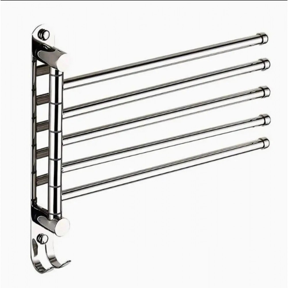 Тримач для рушників Valeso NSM 008 призначений для використання у ванній кімнаті або на кухні. Основна особливість конструкції – поворотне кріплення тримачів, яке дозволяє складати їх уздовж стіни, звільняючи простір, коли вішалка не використовується. За потреби просушити рушник – одна з 5-ти (або кілька) стійок висувається на потрібний кут для розвішування рушників і їх ефективного сушіння.