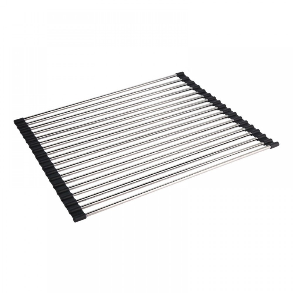 Сушарка для посуду встановлюється на мийку. Вона дозволяє зберігати посуд сухим і завжди під рукою. Виріб виконаний у вигляді решітки з 17 стрижнями з хромованим покриттям, що запобігає утворенню корозії, та чорними панелями з обох боків для їх кріплення.