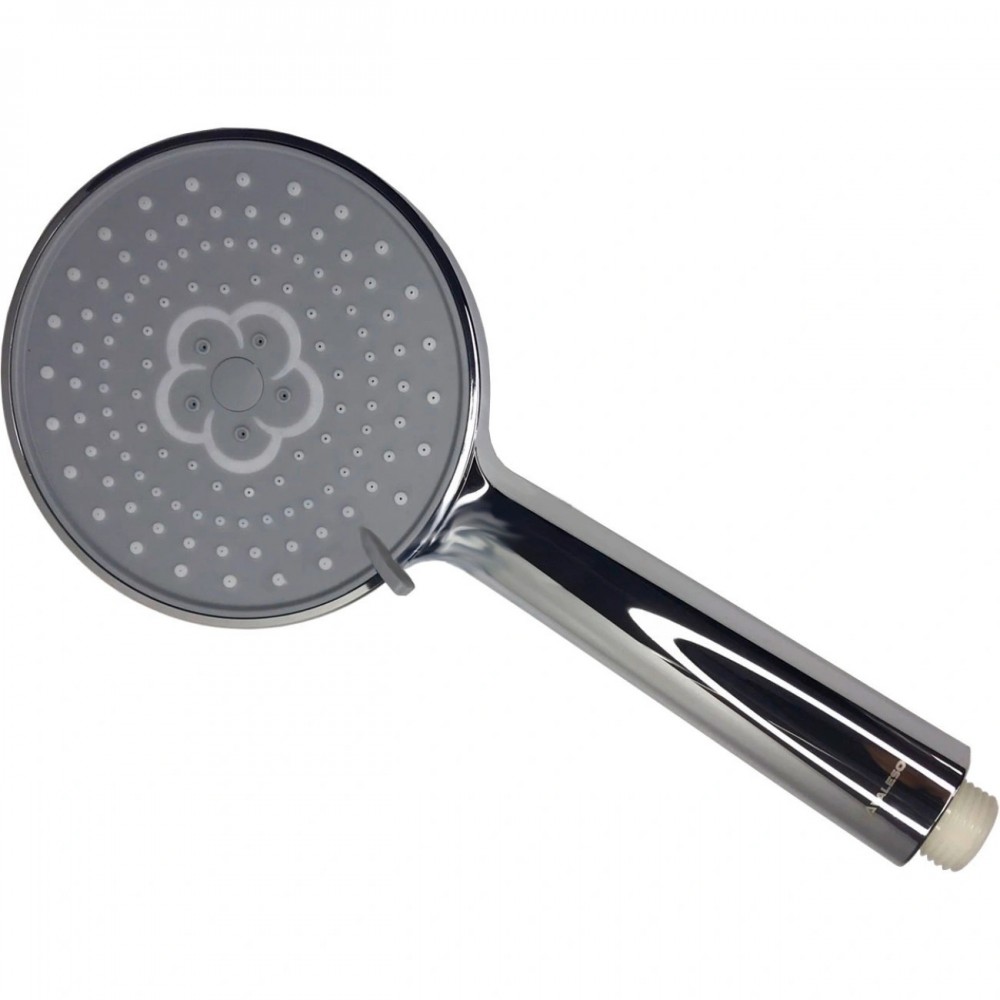 Ручний душ великого розміру з вибором одного з трьох режимів подачі душового струменя. Модель виготовлена з міцного ABS пластику з хромованим покриттям. Підключення класичне - 1/2 дюйма. Розпилювальна головка круглої форми діаметром 130 мм.
