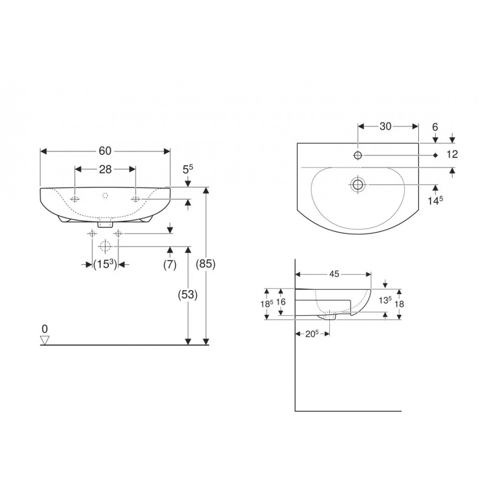 Умивальник призначений для монтажу на тумби. Отвір для змішувача в центрі, умивальник з переливом