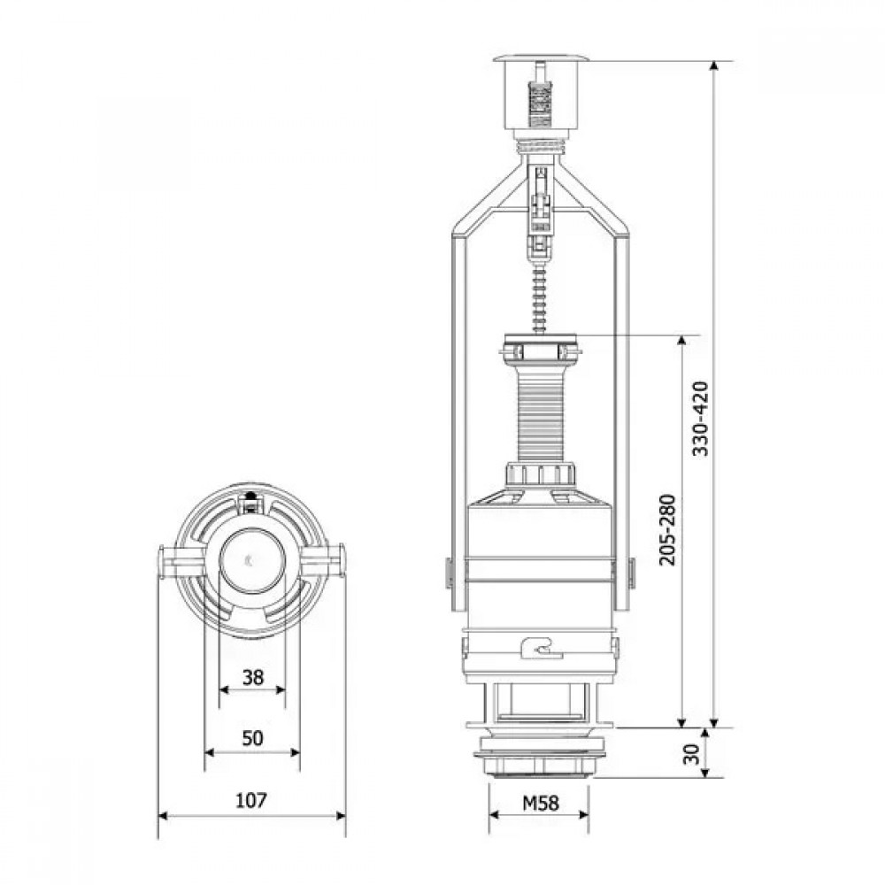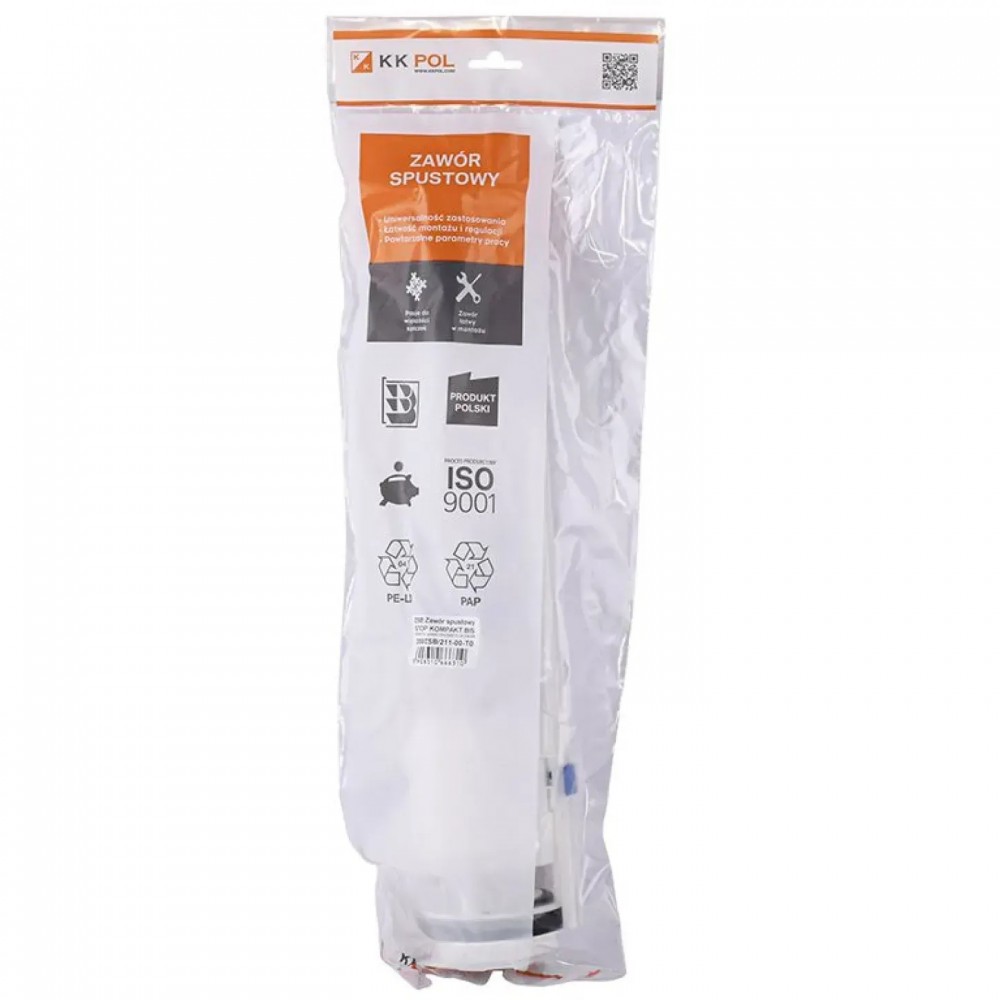 Зливний механізм KK POL ZSB/210 — це універсальне рішення для заміни або встановлення арматури в бачок унітазу заввишки від 33 до 38 см. Завдяки вбудованій функції STOP, ви можете вручну зупинити злив води, що дозволяє зменшити витрати при частковому спуску. Механізм оснащений круглою кнопкою діаметром 38 мм та надійним зливним клапаном, що забезпечує стабільну роботу.