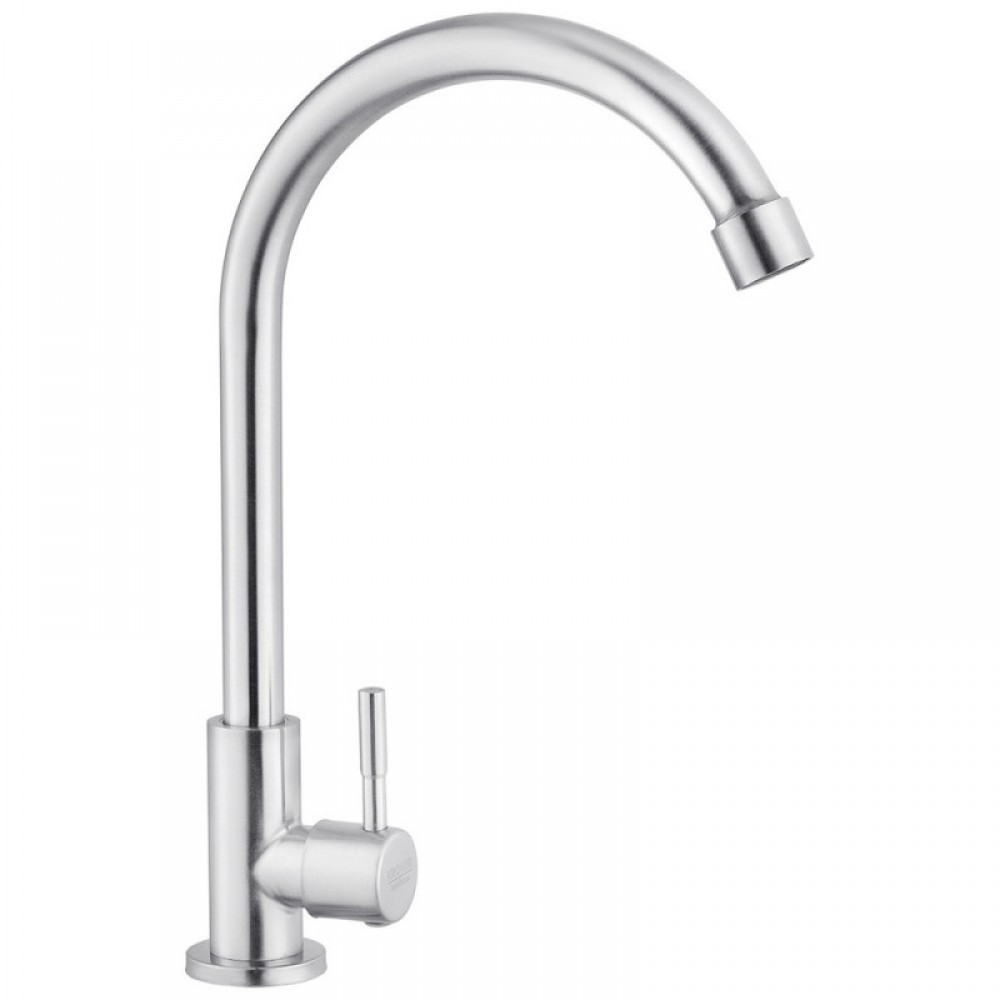 Кран на одну воду Kroner KRP Edelstahl Klassisch - ESG098 є ідеальним рішенням для вашої кухні, забезпечуючи високий рівень зручності та надійності у використанні. Цей змішувач підходить для встановлення в кухонному просторі та пропонує зручне врізне підключення. Кран Kroner KRP Edelstahl Klassisch - ESG098 має сучасний та елегантний дизайн, який чудово доповнить інтер'єр вашої кухні. Нікельований колір надає крану сучасного вигляду, при цьому додаючи трохи елегантності. Виготовлений із високоякісної нержавіючої сталі, цей кран забезпечує довгий термін служби та надійність у використанні. Це також робить його стійким до корозії та пошкоджень. Механізм змішування на основі кран-букси забезпечує зручне регулювання потоку води та температури, що робить використання крана більш ефективним та зручним. Кран призначений для врізного монтажу, що забезпечує зручне та міцне з'єднання з поверхнею. Тип виливу – поворотний, що збільшує функціональність крана. Кран Kroner KRP Edelstahl Klassisch - ESG098 поставляється з гарантією на 60 місяців, що підкреслює високу якість та надійність цього продукту. Шланги підключення до крана докуповуються окремо, забезпечуючи можливість вибору оптимальних компонентів для підключення. Цей кран від Kroner є практичним і естетично приємним вибором для вашої кухні, де функціональність і стиль поєднуються в ідеальному балансі.