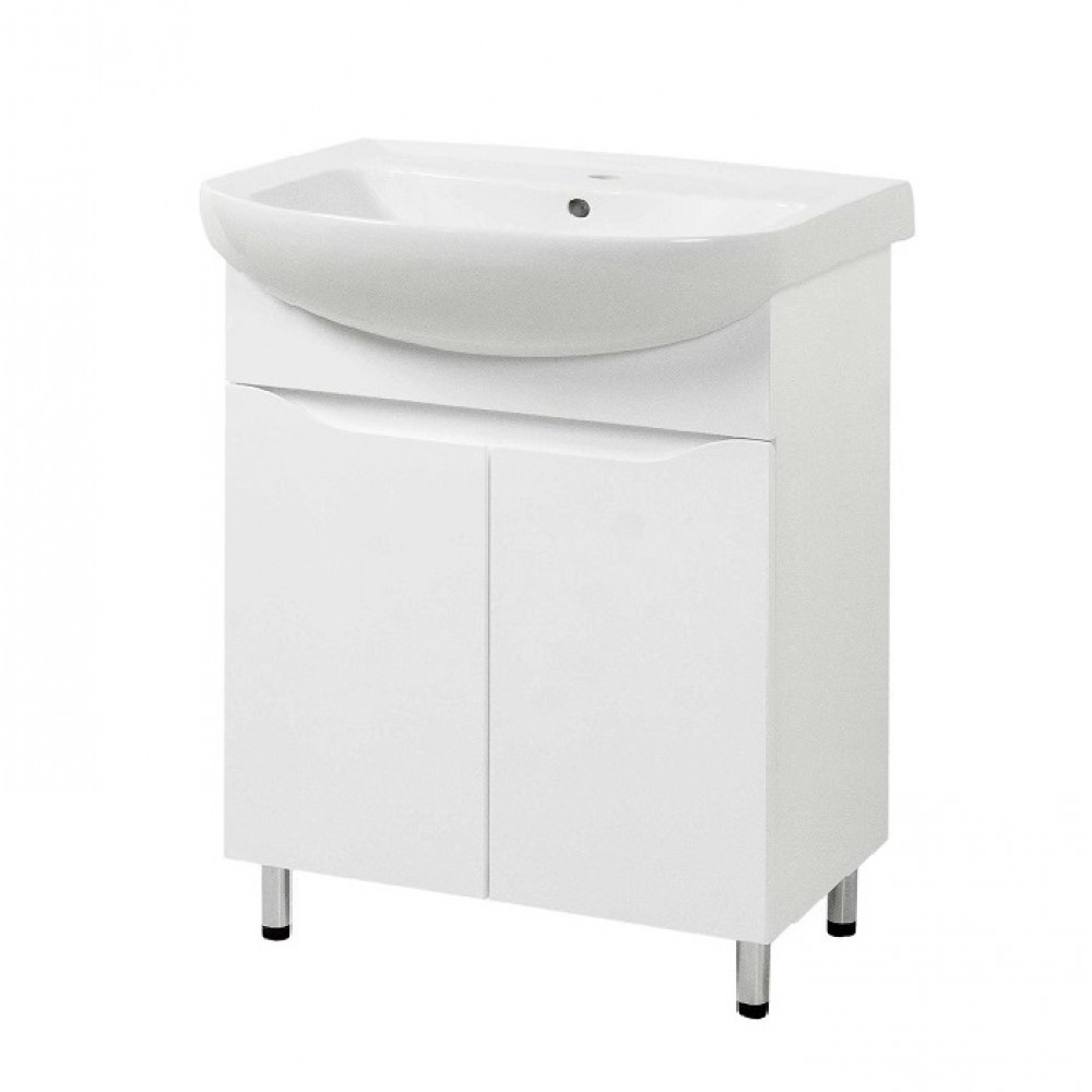 Тумба з умивальником Проксі 60 на ніжках. Оснащена двома дверками. Корпус виконаний із ДСП у білому кольорі, має додаткове лакове глянсове покриття. Фасад складається з двох білих лицьових панелей, які виконані з ДСП і пофарбовані високоякісною вологостійкою емаллю з високим ступенем блиску. Можлива комплектація дзеркалом та пеналом.