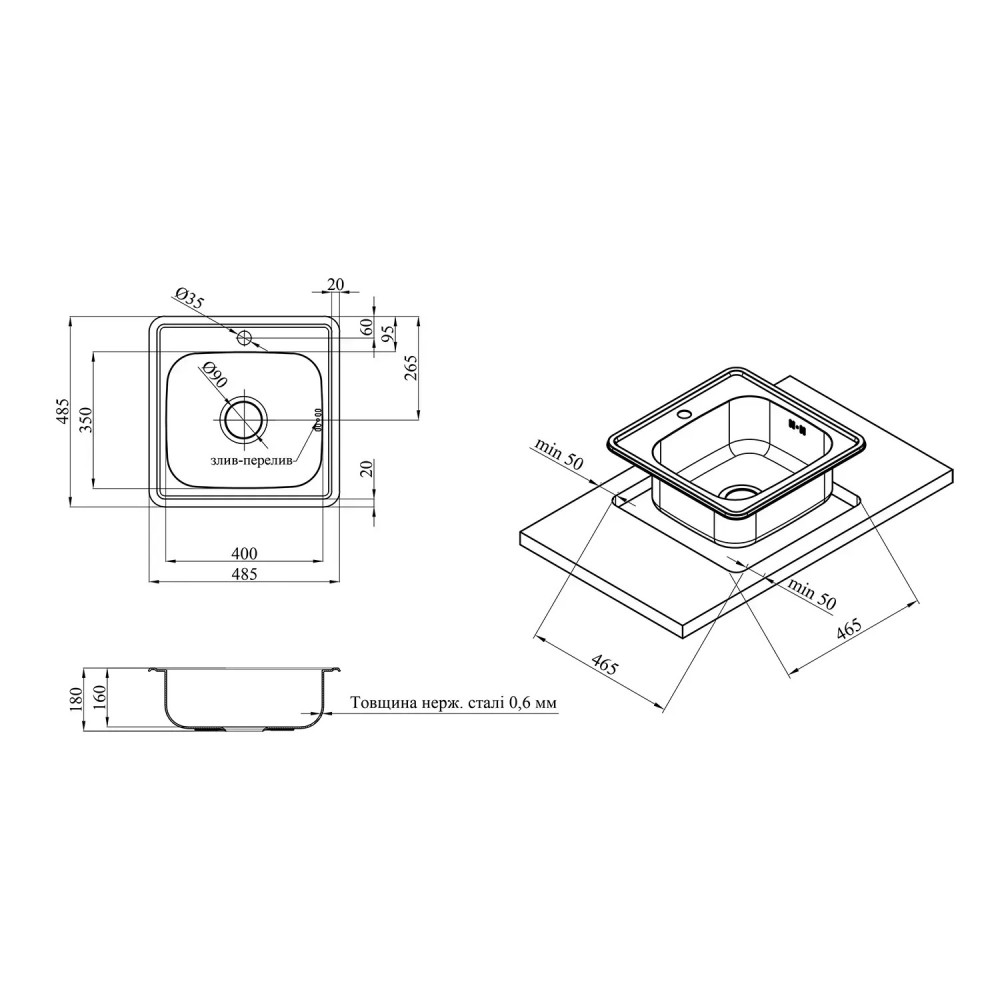 Кухонна мийка Kroner KRP Satin - 4848 (0,6 мм) - ідеальне рішення для сучасної кухні. Завдяки своїй квадратній формі і стильному дизайну вона впишеться в будь-який інтер'єр. Врізний спосіб монтажу дозволяє безпроблемно встановити мийку. Виготовлена з високоякісної нержавіючої сталі, що забезпечує довгий термін служби і легку очистку. Функціональна, надійна та естетично приваблива - мийка від Kroner стане незамінним помічником у приготуваннях та прикрасою вашої кухні.