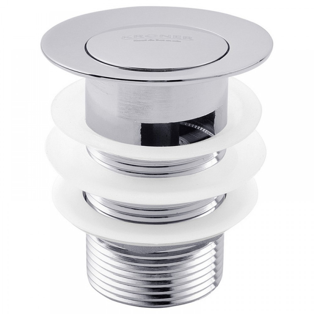 Донний клапан для раковини Kroner KRM-C962-1 1 1/4" з переливом виконаний з латуні в хромованому кольорі, що дає можливість поєднувати його з раковинами з таким же покриттям. Виріб дозволить перекрити зливний отвір у разі необхідності та використовувати раковину як таз, а наявність переливу убереже вас від потопу, якщо ви ненадовго відволіклися під час набирання води.Клапан монтується не більше 5 хвилин і керується натисканням на кришку у вигляді круглої кнопки.