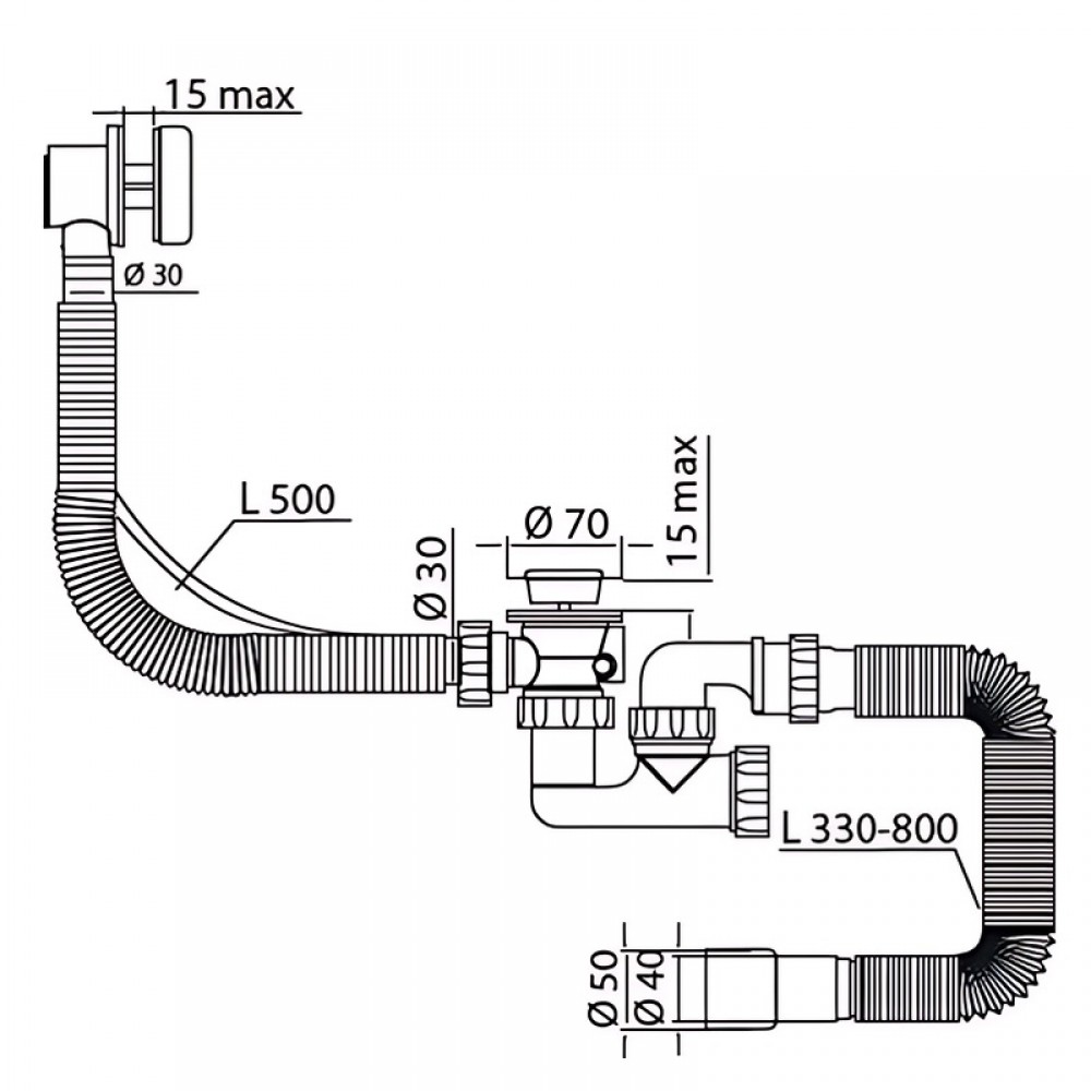 Сифон для ванни MIXXUS SV-02-B з ревізією, перелив "автомат"