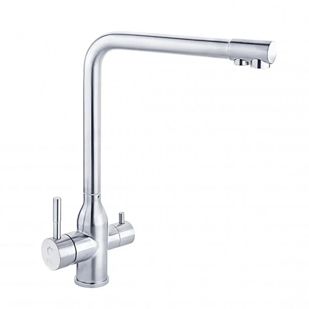 Змішувач для кухні PERLA "OCELI" PSS501 з можливістю підключення до фільтру – це гармонія практичності та вишуканого дизайну. Високий Г-образний вилив (висота 342 мм, вилив 306 мм, довжина 216/242 мм) створений для зручності – мийте посуд, наповнюйте глечики чи отримуйте чисту фільтровану воду без зайвих зусиль. Виготовлений із нержавіючої сталі SUS304, він тішить око своїм кольором і гарантує стійкість до вологи та часу.