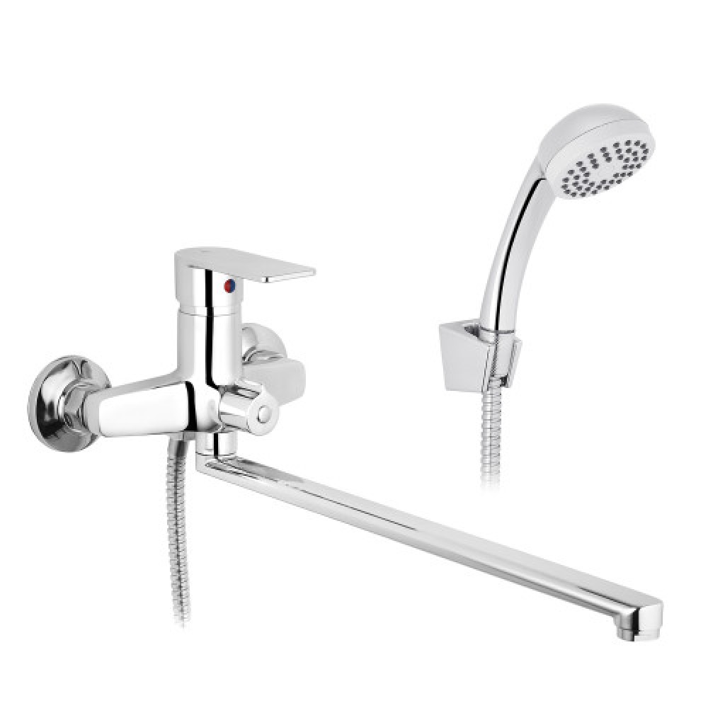 Змішувач для ванни Agua Merida - C071 — надійний одноважільний змішувач з поворотним виливом, який поєднує сучасний дизайн, зручність використання та довговічність. Ця модель із серії Merida ідеально підходить для облаштування ванної кімнати в сучасному стилі. Виготовлений із міцного силуміну з глянцевим хромованим покриттям, змішувач стійкий до корозії та легко очищується від вапняного нальоту. Одноважільна система керування дозволяє швидко та точно регулювати температуру і напір води, а поворотний вилив робить експлуатацію максимально комфортною. Переваги моделі Agua Merida - C071: Стильний дизайн, що пасує до будь-якого інтер’єру ванної Якісні матеріали та надійне складання Проста установка на стіну з кріпленням на ексцентрики У комплекті душовий гарнітур: кругла лійка Ø67 мм з одним режимом, гнучкий шланг довжиною 1480 мм і кронштейн Економна витрата води — до 13 л/хв при тиску до 3 бар Картридж діаметром 35 мм для плавного перемикання